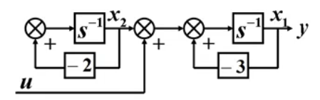 [x1˙x2˙][y1y2]=[21−1−3][x1x2]+[−11]u=[1−100][x1x2]